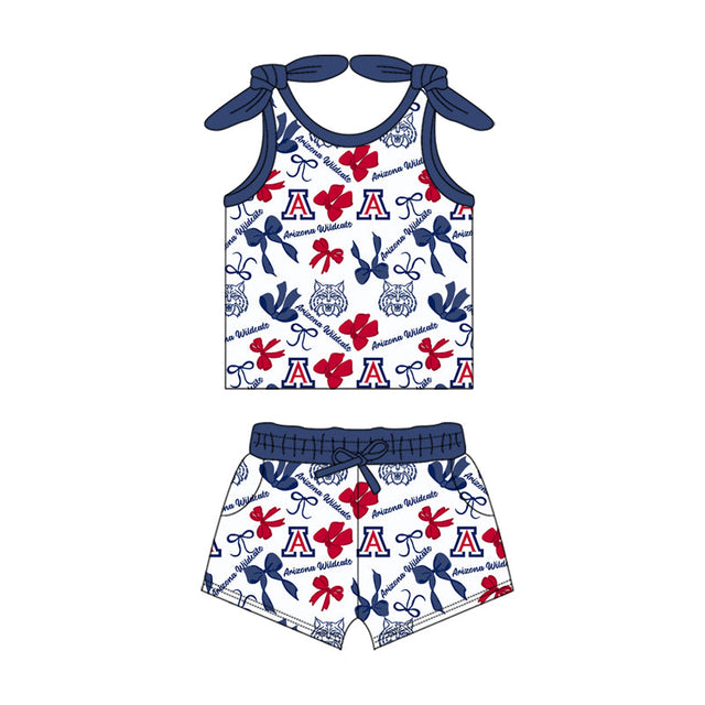 MOQ 3 pcs sleeveless A blue bow top shorts girls team clothes