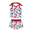 MOQ 3 pcs sleeveless B red blue bow top shorts girls team clothes