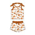 MOQ 3 pcs sleeveless bull skull bow top shorts girls team clothes