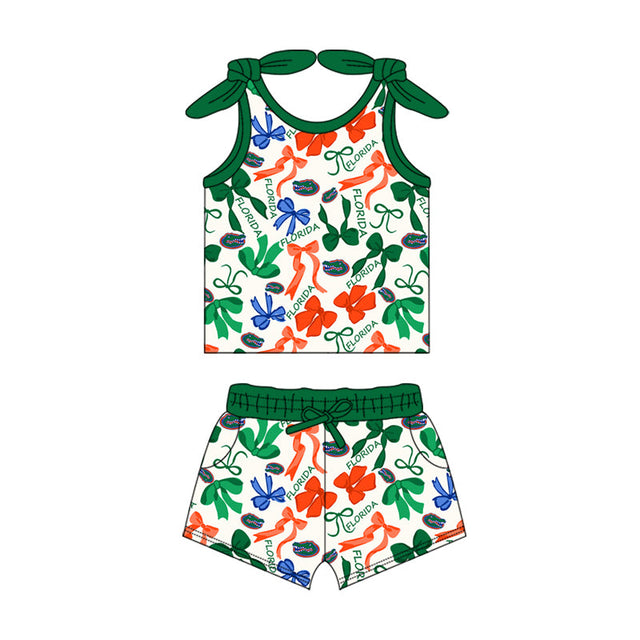 MOQ 3 pcs sleeveless crocodile bow top shorts girls team clothes