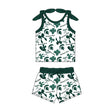 MOQ 3 pcs sleeveless M green bow top shorts girls team clothes