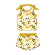 MOQ 3 pcs sleeveless M yellow bow top shorts girls team clothes