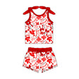 MOQ 3 pcs sleeveless N red bow top shorts girls team clothes