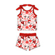 MOQ 3 pcs sleeveless red G bow top shorts girls team clothes