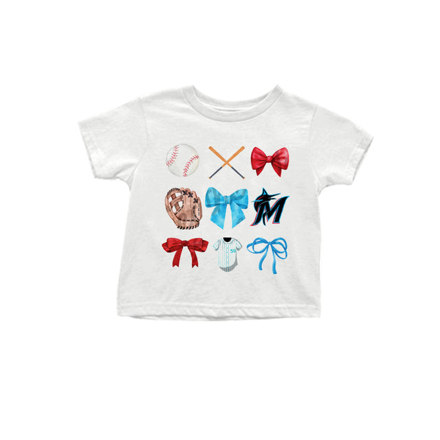 MOQ 3 pcs White light blue bow M baseball kids team shirt - 3-6M is backordered and will ship as soon as it is back in stock.