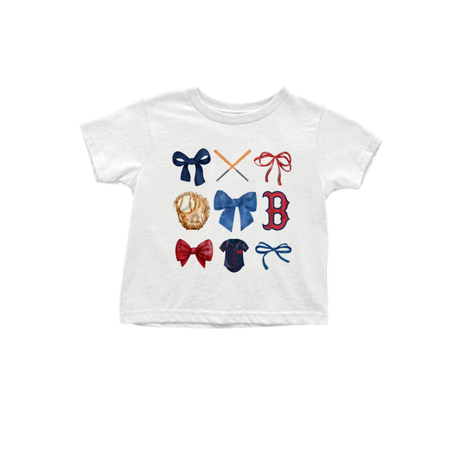 MOQ 3 pcs White Red blue bow B baseball kids team shirt