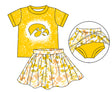 MOQ 3 pcs yellow bleached top bow skirt girls team outfits - 3-6M is backordered and will ship as soon as it is back in stock.