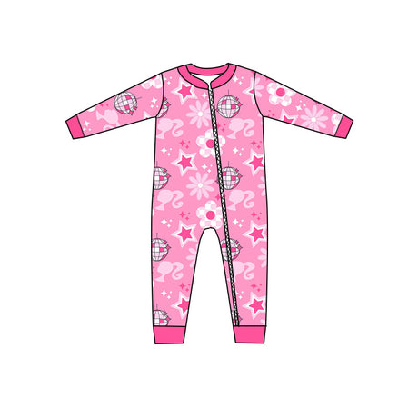 $1500Unit price /UnavailableMOQ 5 PCS pink floral party baby girls zipper romper