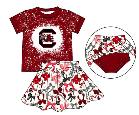 From $1550Unit price /UnavailableMOQ 3 pcs maroon bleached top bow skirt girls team outfits