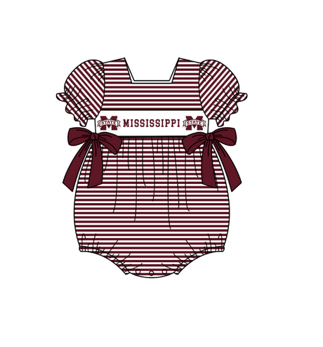 $1250Unit price /UnavailableMOQ 5 pcs maroon stripe bow M short sleeves baby girls team romper