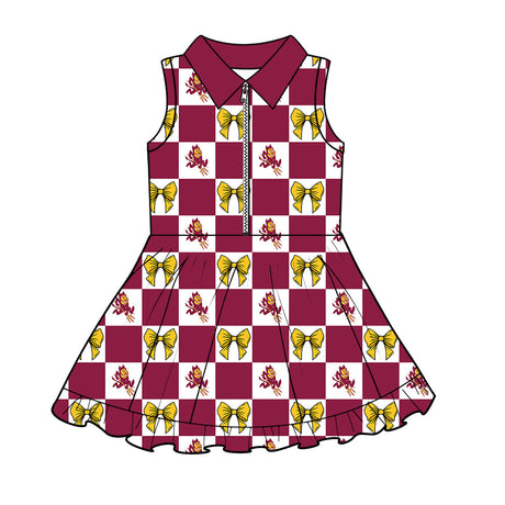 From $1500Unit price /UnavailableMOQ 5 pcs sleeveless yellow plaid bow maroon girls team athletic polo dress