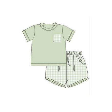 From $1400Unit price /UnavailableMOQ 5 pcs short sleeves plaid pocket top shorts boys outfits