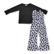 Black cotton top purple leopard overalls girls clothes