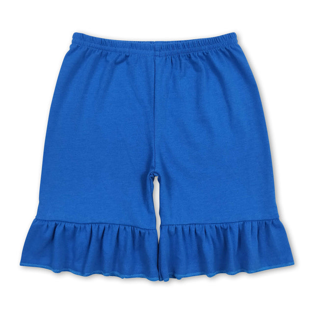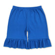 Blue cotton one layer ruffle girls summer shorts - 3-6M is backordered and will ship as soon as it is back in stock.