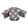 Cow print santa tassels baby girls Christmas romper - 0-3M is backordered and will ship as soon as it is back in stock.