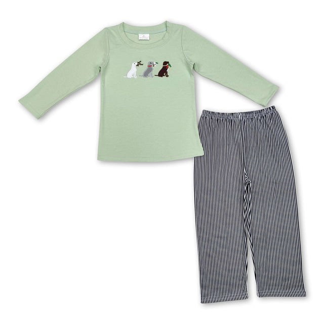 Long sleeves dog duck top plaid pants boys clothing