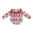 Long sleeves red bow santa baby girls Christmas romper - 0-3M is backordered and will ship as soon as it is back in stock.