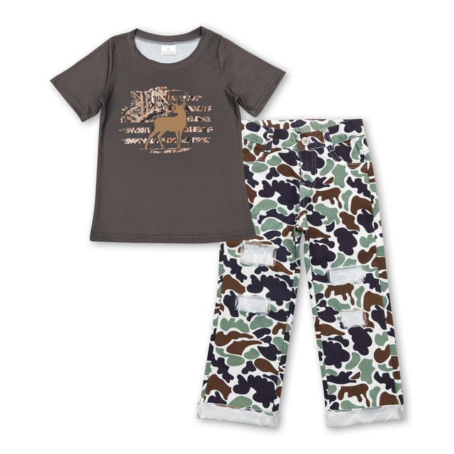Olive deer top camo jeans boys hunting clothing - 6-12M is backordered and will ship as soon as it is back in stock.