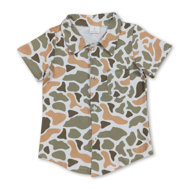 Short sleeves light color camo kids boys button down shirt - 3-6M is backordered and will ship as soon as it is back in stock.