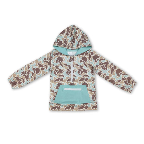 Long sleeves light camo pocket zipper boys hoodie