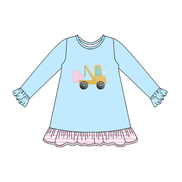 blue valentine tractor print long sleeve girl dress