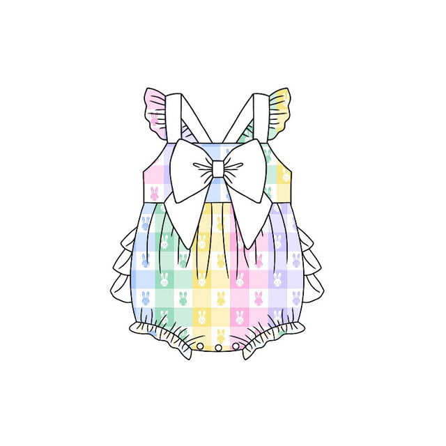 Colorful plaid bunny baby girls easter romper