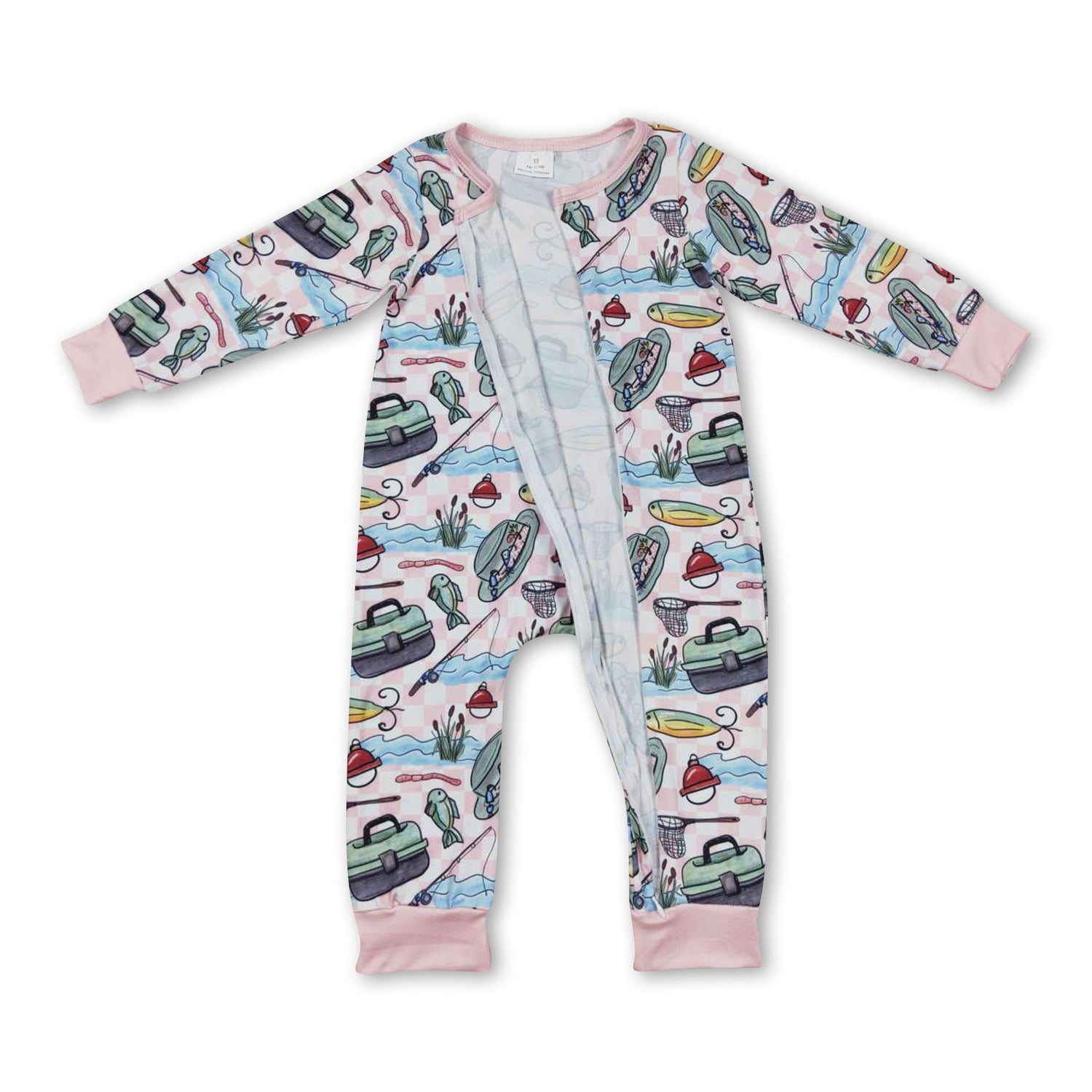 Dad's fishing buddy zipper baby girl romper - 0-3M is backordered and will ship as soon as it is back in stock.