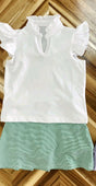 Flutter sleeves white cotton top green stripe skirt girls clothes