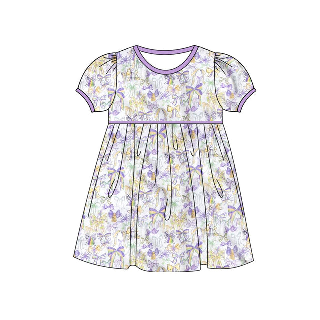 Green yellow purple bows kids girls Mardi Gras dresses - 3-6M is backordered and will ship as soon as it is back in stock.