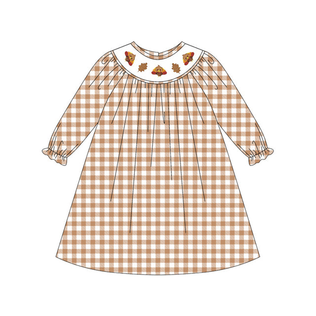Khaki plaid turkey smocked girls Thanksgiving dress