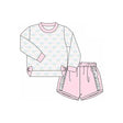 Long sleeves floral pink bow top light blue shorts girls clothes