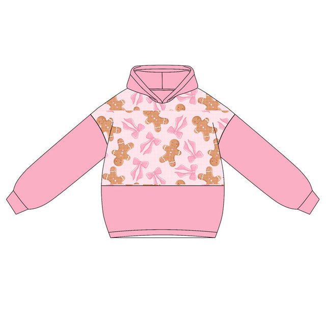 Long sleeves pink gingerbread bows girls Christmas hoodie