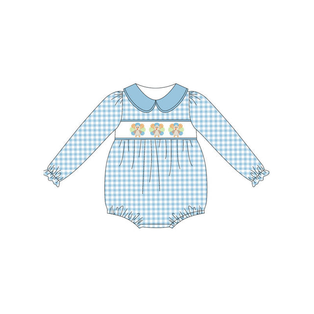 Long sleeves plaid turkey baby girls Thanksgiving romper