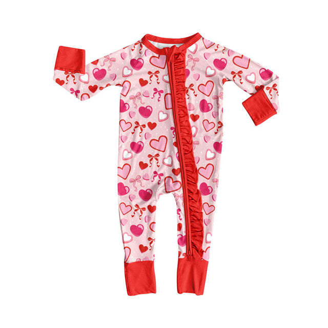Pink bow heart baby girls Valentine's zipper romper - 0-3M is backordered and will ship as soon as it is back in stock.