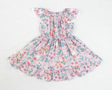 pink flowers rabbot print ruffle sleeve girl easter dress