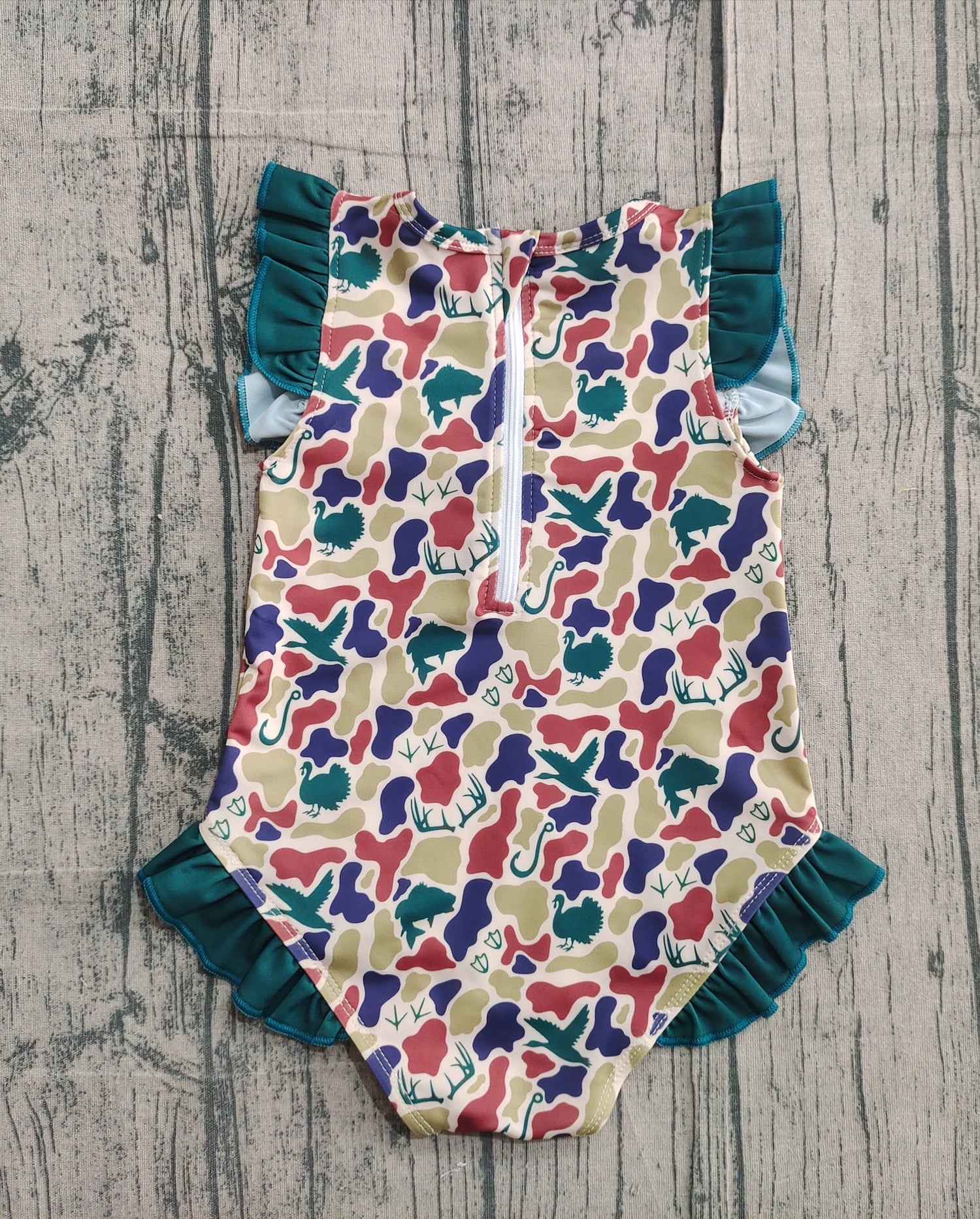 Ruffle camo deer duck fishing hunting baby girls swimsuit