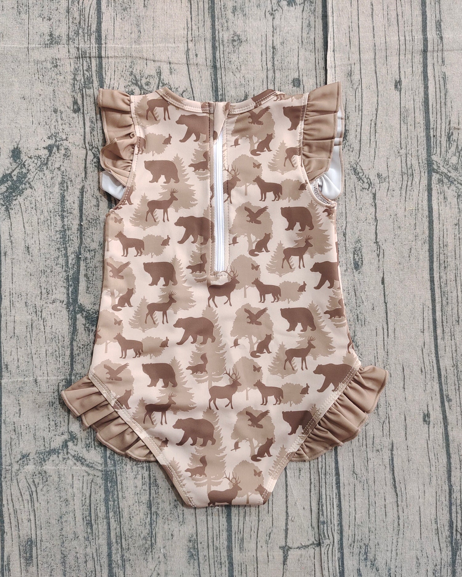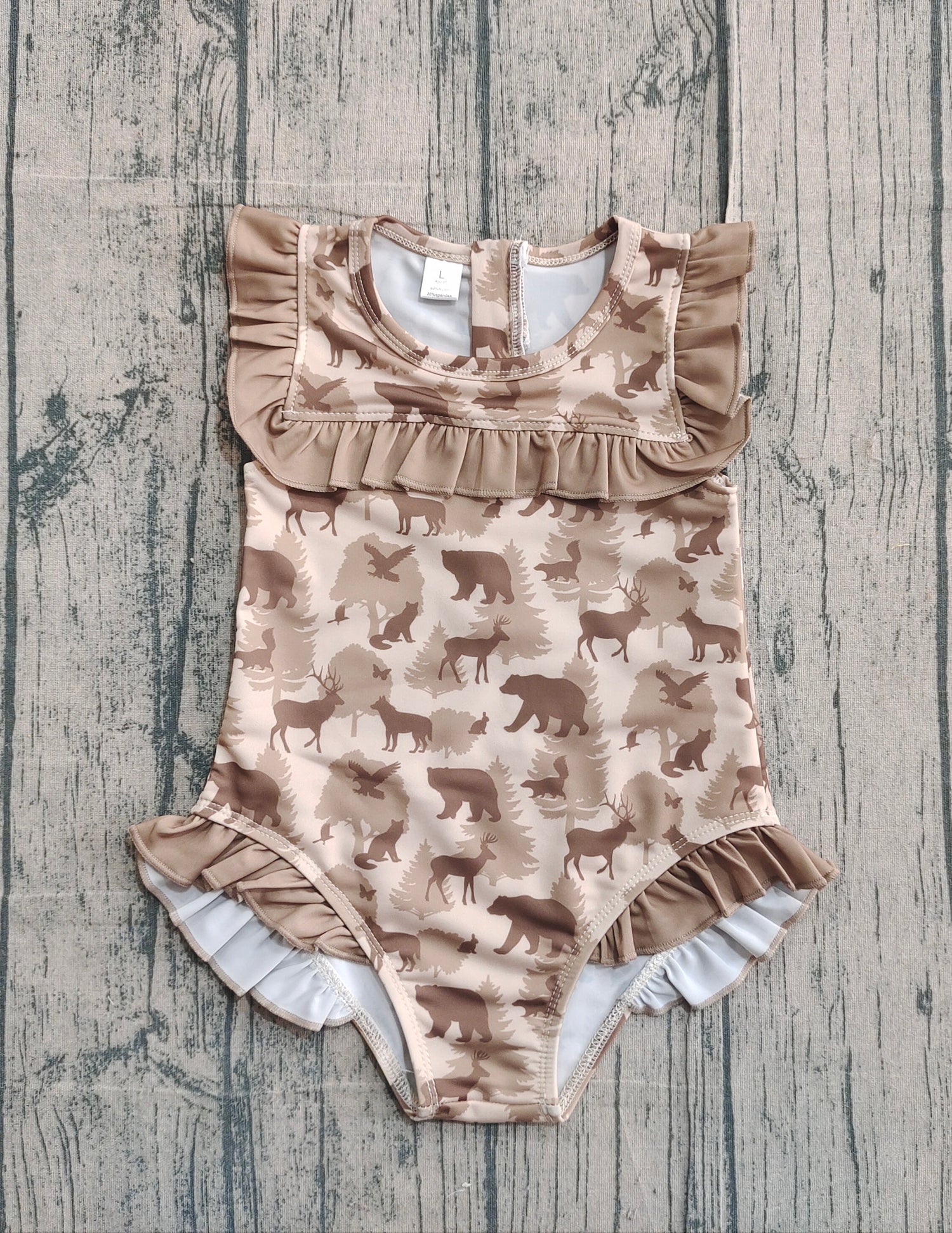 Ruffle deer duck dog bear hunting baby girls swimsuit