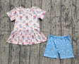 Short sleeves boots bow peplum shorts girls 4th of july set