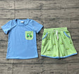Short sleeves pocket top plaid golf car shorts boys clothing
