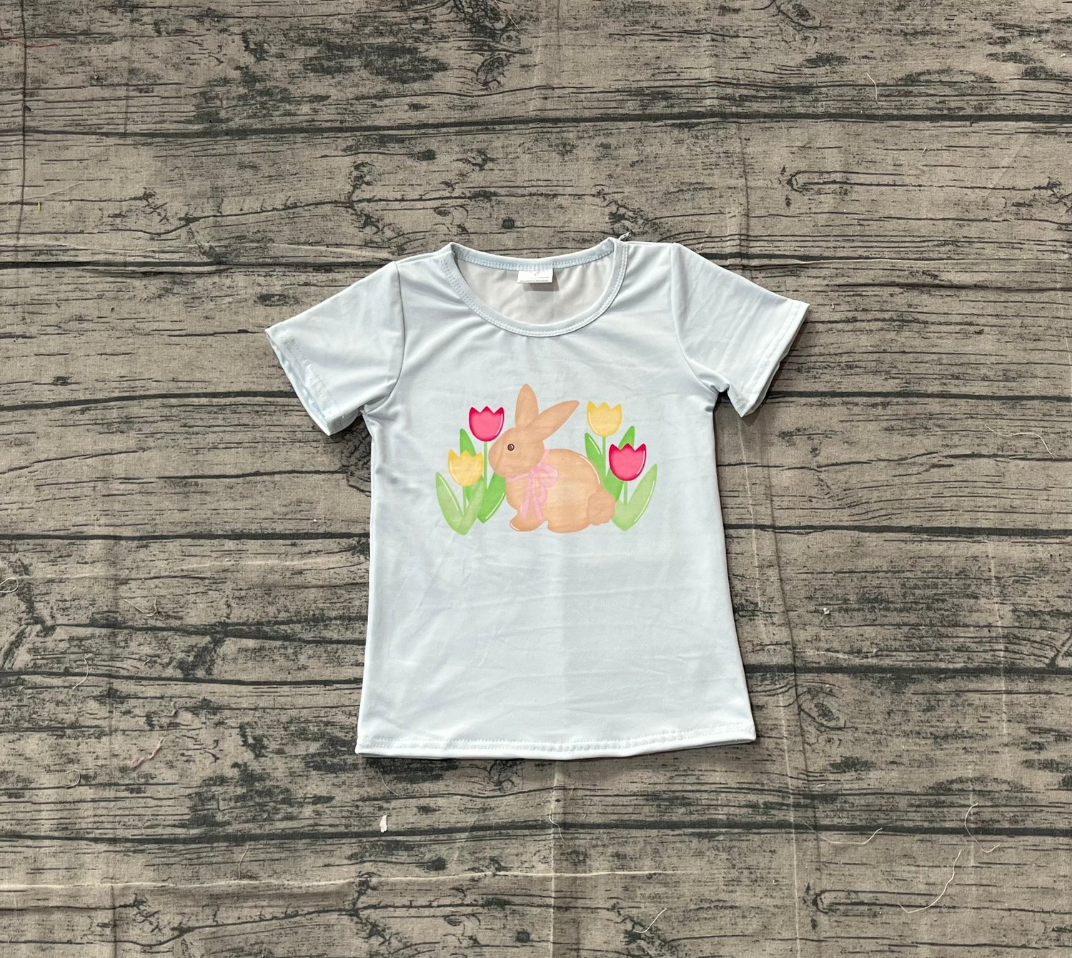 Short sleeves rabbit tulip kids girls Easter shirt
