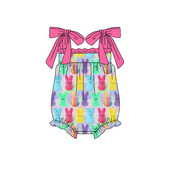 Straps colorful bunny baby girls Easter romper - 0-3M is backordered and will ship as soon as it is back in stock.