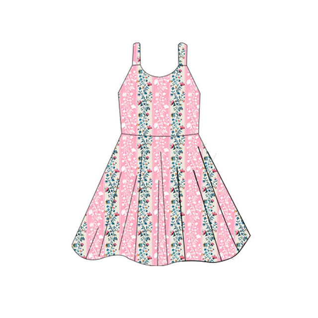 Straps pink floral kids girls summer dresses
