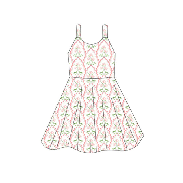 Straps pink floral toddler girls summer dresses