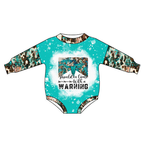 Turquoise bull skull long sleeves baby kids romper