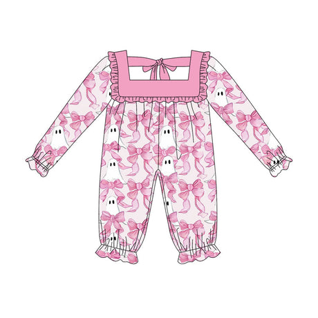 Long sleeves pink ruffle bow ghost baby Halloween romper