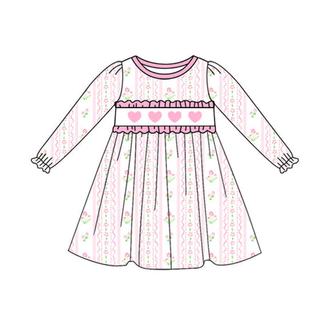 From $1000Unit price /Unavailablepink flowers valentine heart print long sleeve girl dress