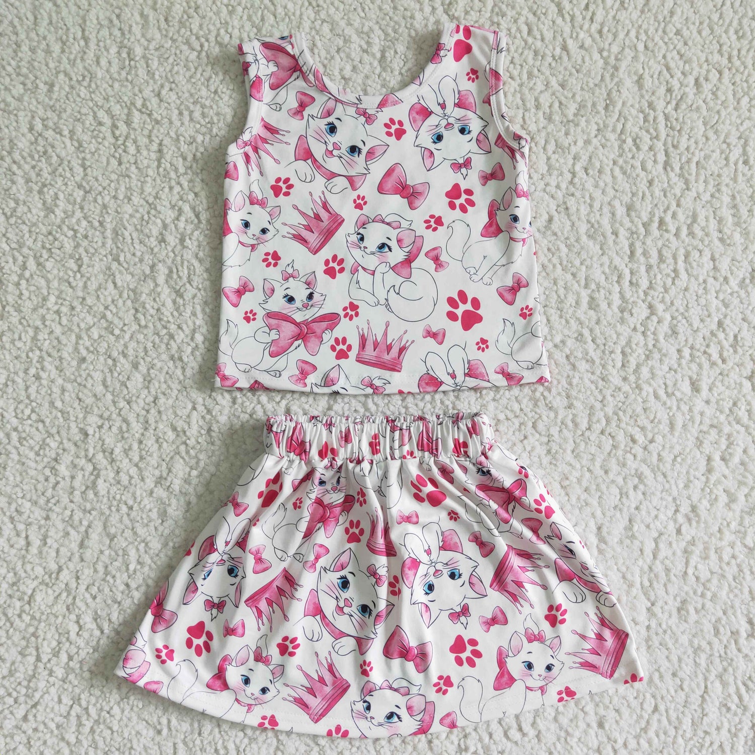 Cat print sleeveless shirt skirt baby girls clothing - 3-6M is backordered and will ship as soon as it is back in stock.