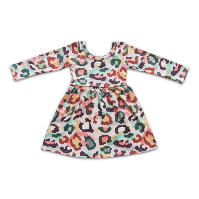 Colorful leopard long sleeve girls dresses - 3-6M is backordered and will ship as soon as it is back in stock.