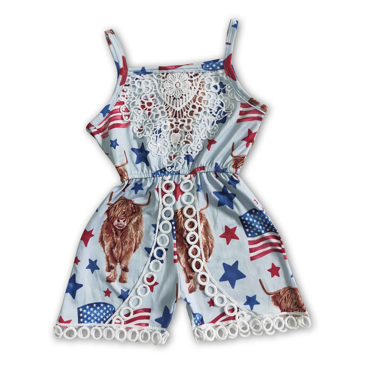 Highland cow jumper baby girls 4th of july jumpsuit
