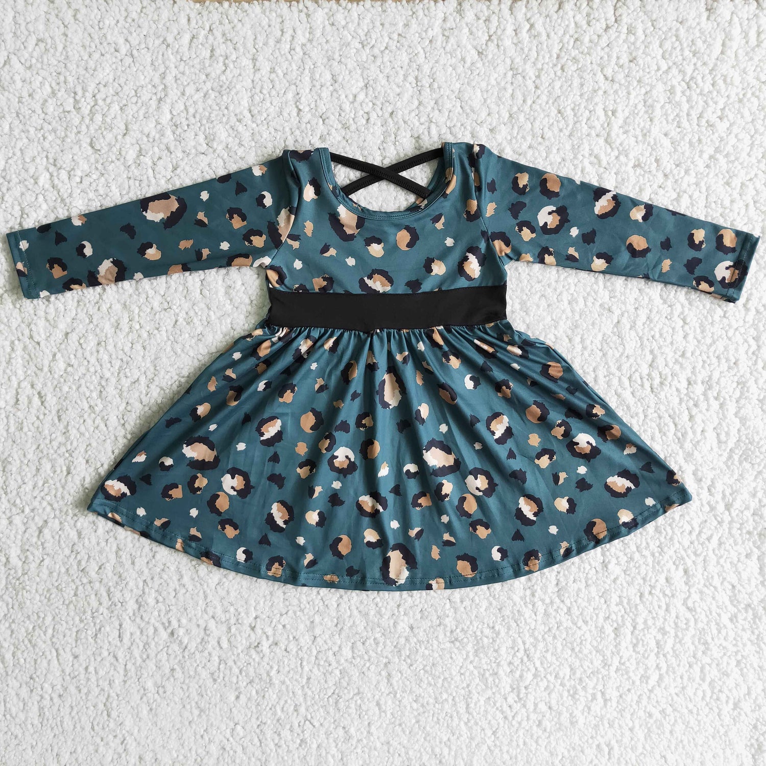 Leopard long sleeve girls twirl dresses - 3-6M is backordered and will ship as soon as it is back in stock.